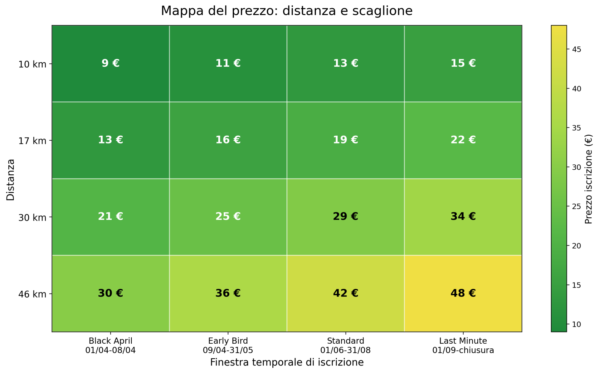 trattarlo come una funzione di equilibrio tra atleta, distanza, tempo di iscrizione e realtà organizzativa.