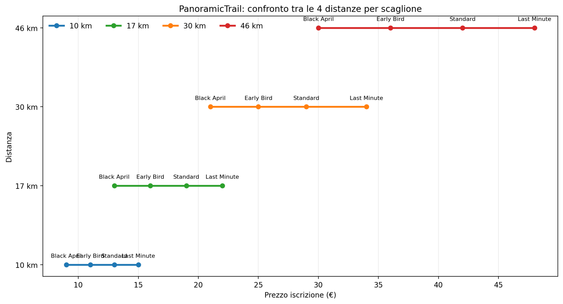 Per questo il €/km delle gare corte è più alto e quello delle lunghe più basso.