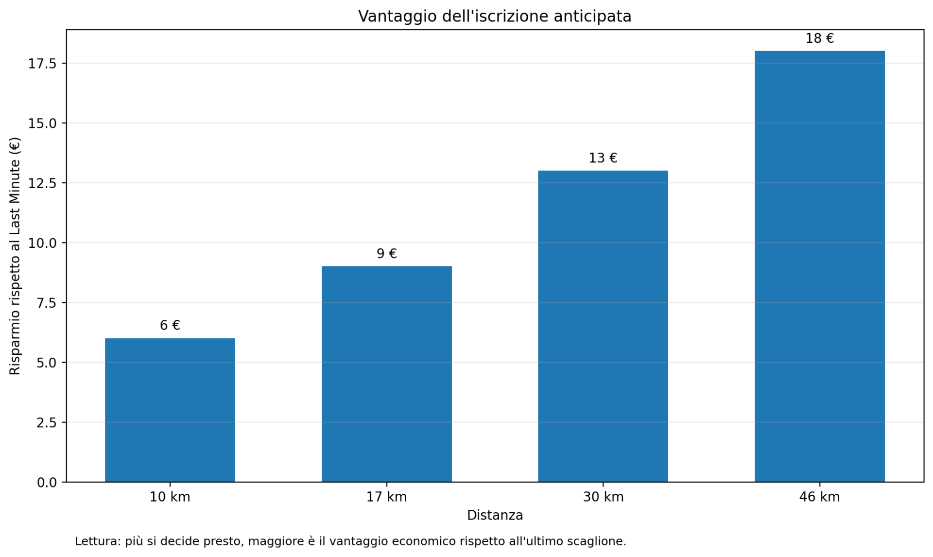 Premia l’iscrizione anticipata e rende progressivamente meno favorevoli le finestre tardive. - arrotonda