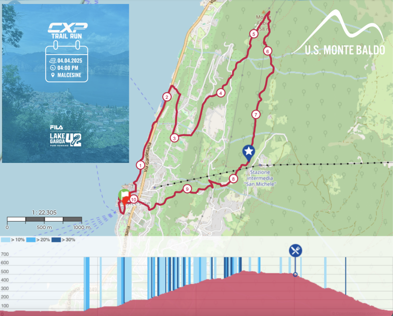 Organizzata dalla US Montebaldo, la storica associazione di Malcesine nata nel 1976, questa corsa non competitiva ti permetterà di seguire un percorso segnalato con fettucce e cartelli come nelle gare ufficiali, assistito da volontari e con un rinfresco speciale nel punto più alto e panoramico a 500 metri di altitudine!